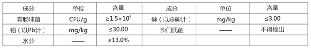 混合型饲料添加剂 粪肠球菌(Ⅰ型) ◆改善肠胃机能,消化吸收好 ◆皮毛光亮,生长速度明显加快 ◆提升机体免疫力,减少应激反应 家畜类 体型瘦弱、经常腹泻、长得慢、肠道吸收差、免疫力低、经常生病、采食量小、肉质品质不高、卖相不好等情况。 家禽类 卖相不好、产蛋少、产蛋高峰低、长得慢、抵抗力低、易生病、毛羽凌乱。 反刍类 牛、羊长得慢、净肉率不高。奶牛产奶量少、产奶高峰期短、经常腹泻等情况。 水产类 水质环境差、水产肠道不健康、免疫力低下、发病率高等。 【原料组成】粪肠球菌、枯草芽孢杆菌、凝结芽孢杆菌、丁酸梭菌、酿酒酵母杆菌、嗜酸乳杆菌及其代谢产物。 【感 官】粉状,色泽一致,无发霉变质、结块及异味、异嗅。 【产品分析保证值】